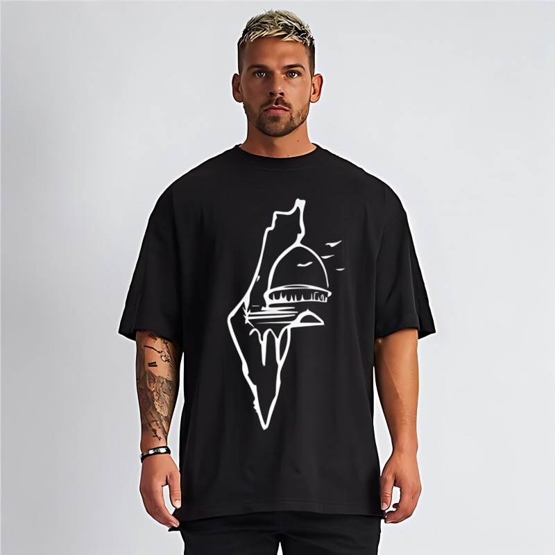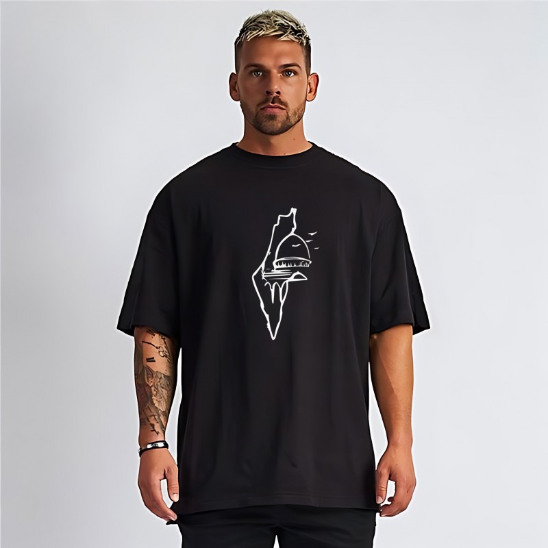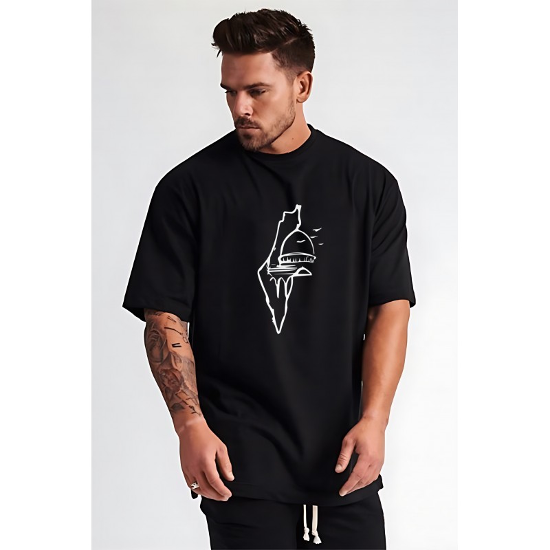 اكتشف تي شيرت فلسطين الخريطة الفريد والمريح للغاية من القطن الحضري، المتوفر بمقاسات S إلى XXL. يتميز هذا التي شيرت الأسود الأنيق برسمة بيضاء لافتة لخريطة فلسطين، مصنوعة من القطن الناعم لراحة طوال اليوم. مثالي للخروج غير الرسمي أو كقطعة تعبيرية، يجسد الموضة الحضرية بينما يحتفل بالأهمية الثقافية.