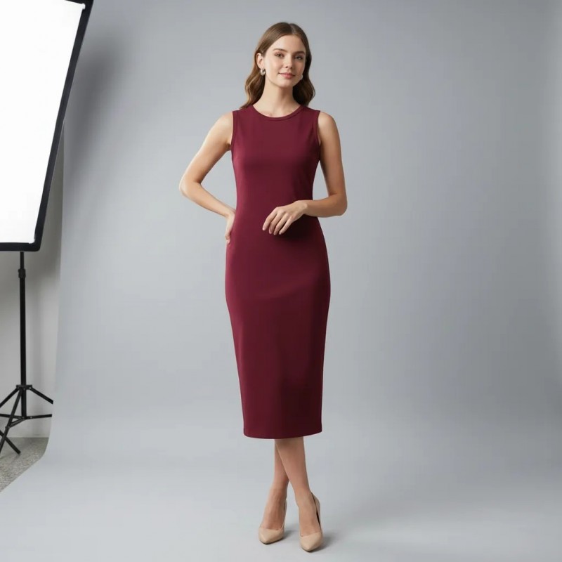 Elegant Burgundy Sleeveless Midi Dress