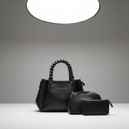 Ensemble de Sac à Main Noir Élégant et Accessoires