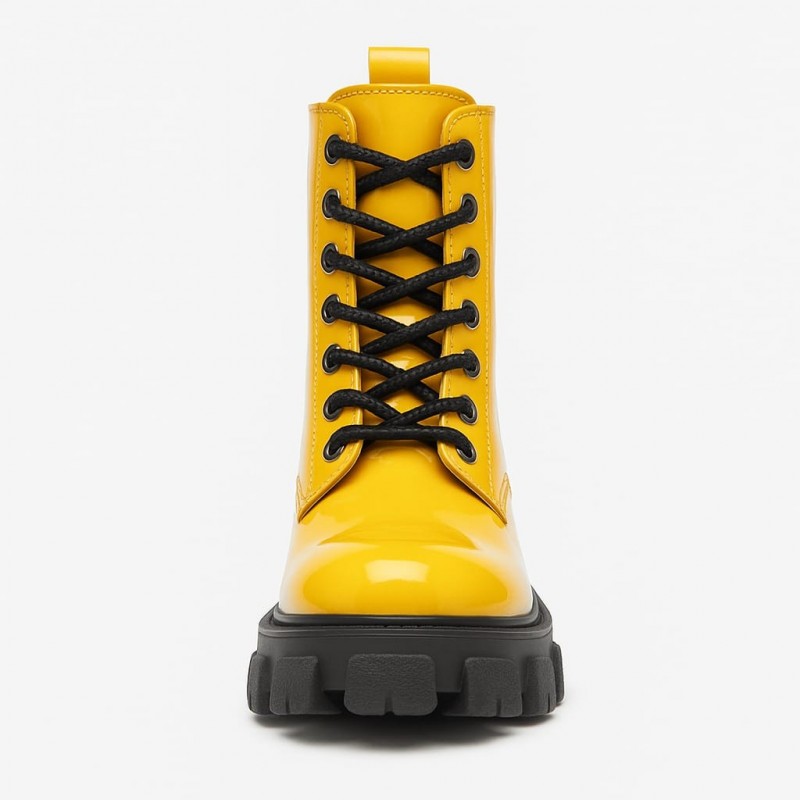 Bottes de combat jaunes audacieuses et élégantes avec des semelles épaisses.